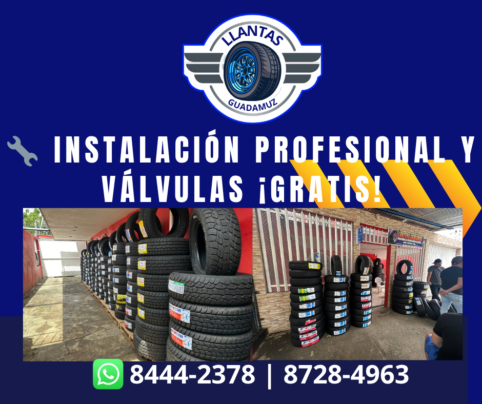 En Llantas Guadamuz nos especializamos en la venta e instalación de llantas con garantía y servicio de calidad. Ofrecemos válvulas totalmente gratis en cada compra, junto con la instalación profesional de tus neumáticos. Contamos con personal capacitado, precios accesibles y marcas reconocidas para todo tipo de vehículo.