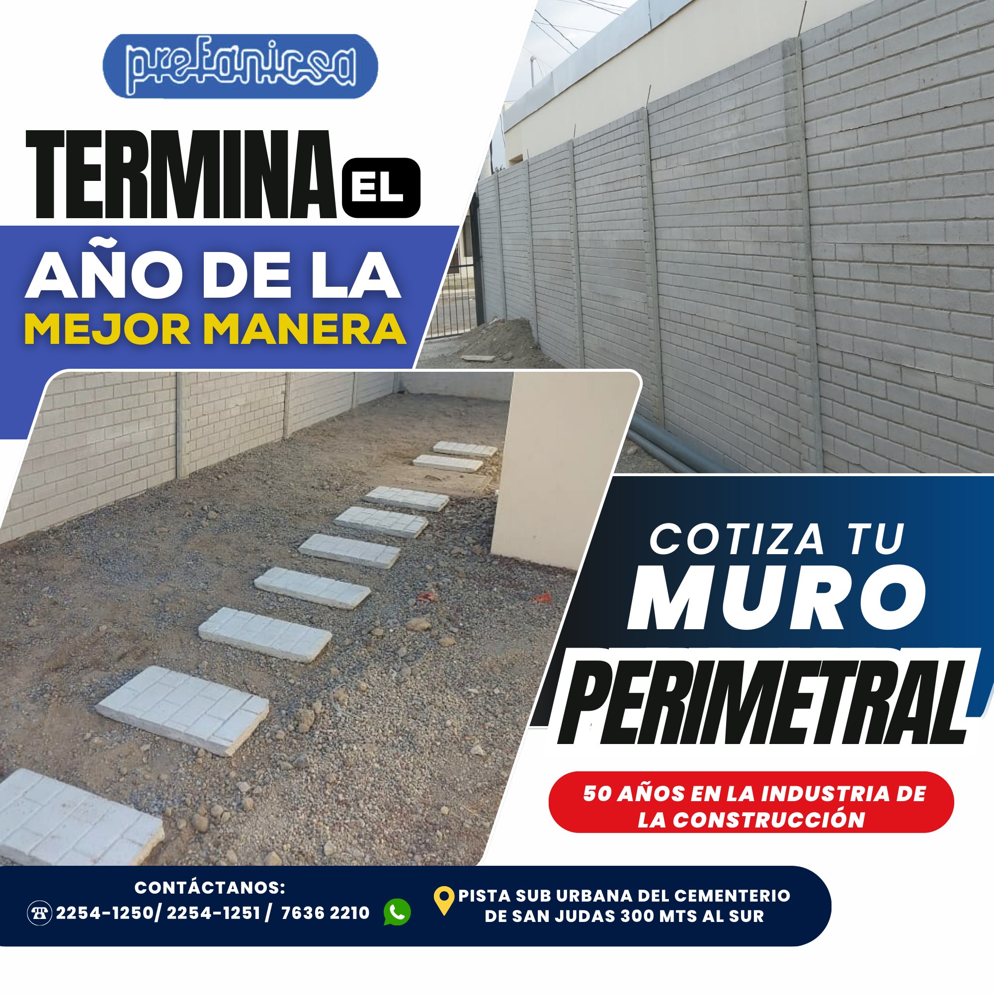 PREFANICSA es una empresa líder en soluciones de construcción, especializada en la instalación de muros prefabricados con altos estándares de calidad, precisión y durabilidad. Nuestro compromiso es ofrecer estructuras sólidas, seguras y eficientes, garantizando resultados que superan las expectativas de cada cliente. En PREFANICSA, transformamos tus proyectos en obras firmes y confiables.